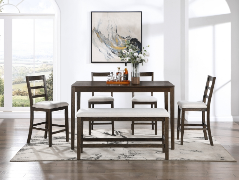 The Clanton Dining Room Collection effortlessly blends classic charm with contemporary comfort. A rich espresso finish on the table and chair frames exudes warmth, while light natural fabric cushions offer inviting softness. The classic ladderback chairs with the clean-lined profile provide timeless appeal, and the plush cushioned bench adds a modern touch. With seating for six—including one table, four chairs, and one bench—this collection is perfect for everyday meals or special gatherings. Available in dining height and counter height options, the Clanton Dining Room Collection adapts beautifully to your space and lifestyle.